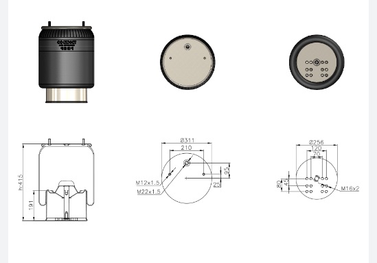 881 COMPLETE AIR SPRING WITH METAL PISTON