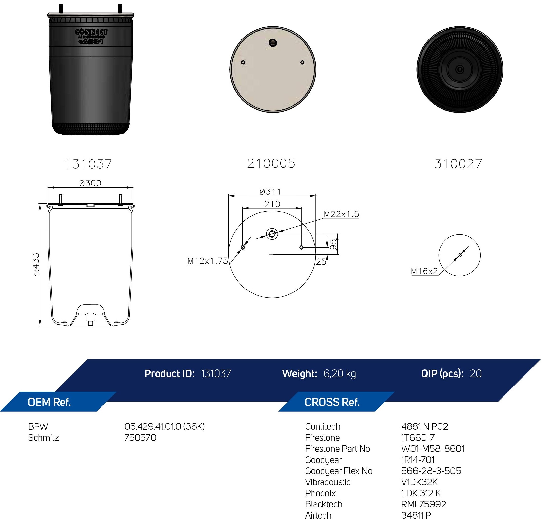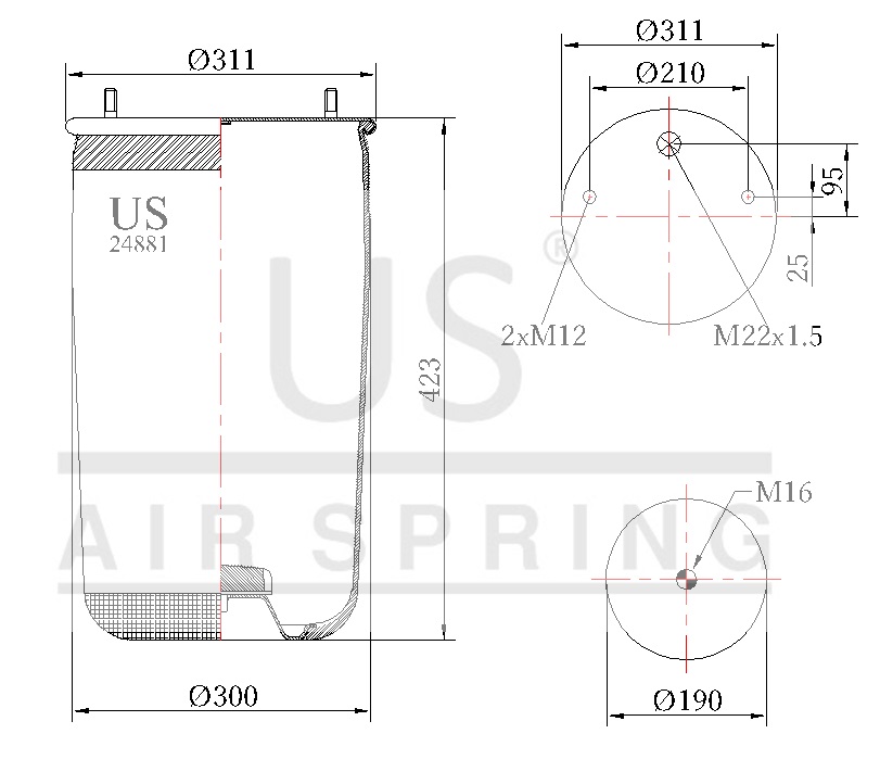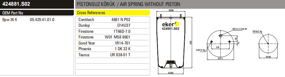 2044-311 | 24881 P AIR SPRING WITHOUT PISTON |